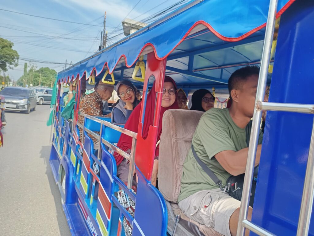 Turen — Sejumlah jamaah dari Pimpinan Cabang (PC) Muhammadiyah Kepanjen yang berkumpul di Masjid Enha hadir mengikuti pengajian yang diselenggarakan oleh Pimpinan Daerah (PD) Muhammadiyah Kabupaten Malang di Turen. Keberangkatan rombongan tersebut menarik perhatian warga setempat karena menggunakan moda transportasi unik: kereta kelinci.
